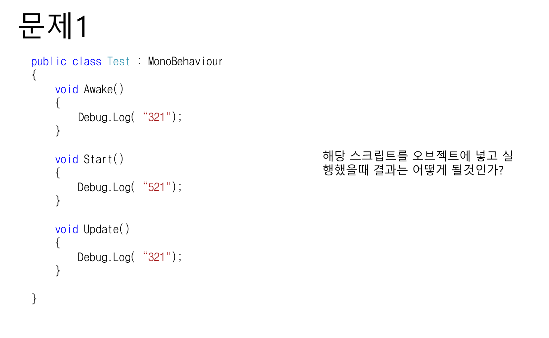 Start의 경우에는 게임이 실행되고 오브젝트들이 불러와진후 한번 실행된다.