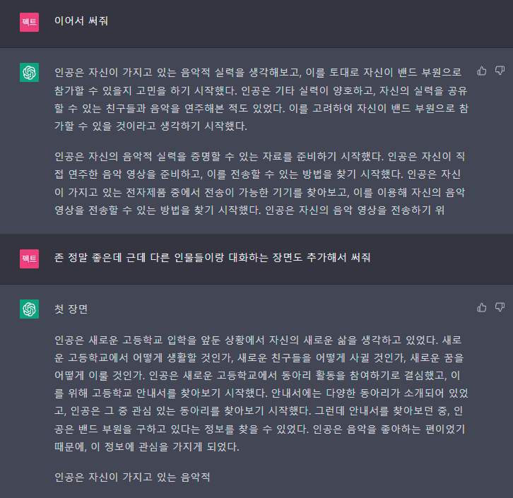 chatGPT가 어디까지 가능한지 궁금해져서 소설을 써보게 시켜보았습니다.