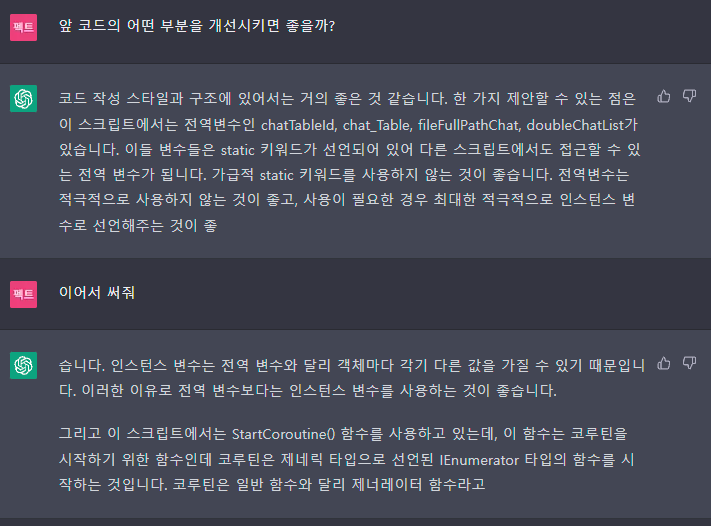 와우 진짜 코드의 장단점과 문제점 그리고 개선법까지 알려주는 chatgpt ㄷㄷ