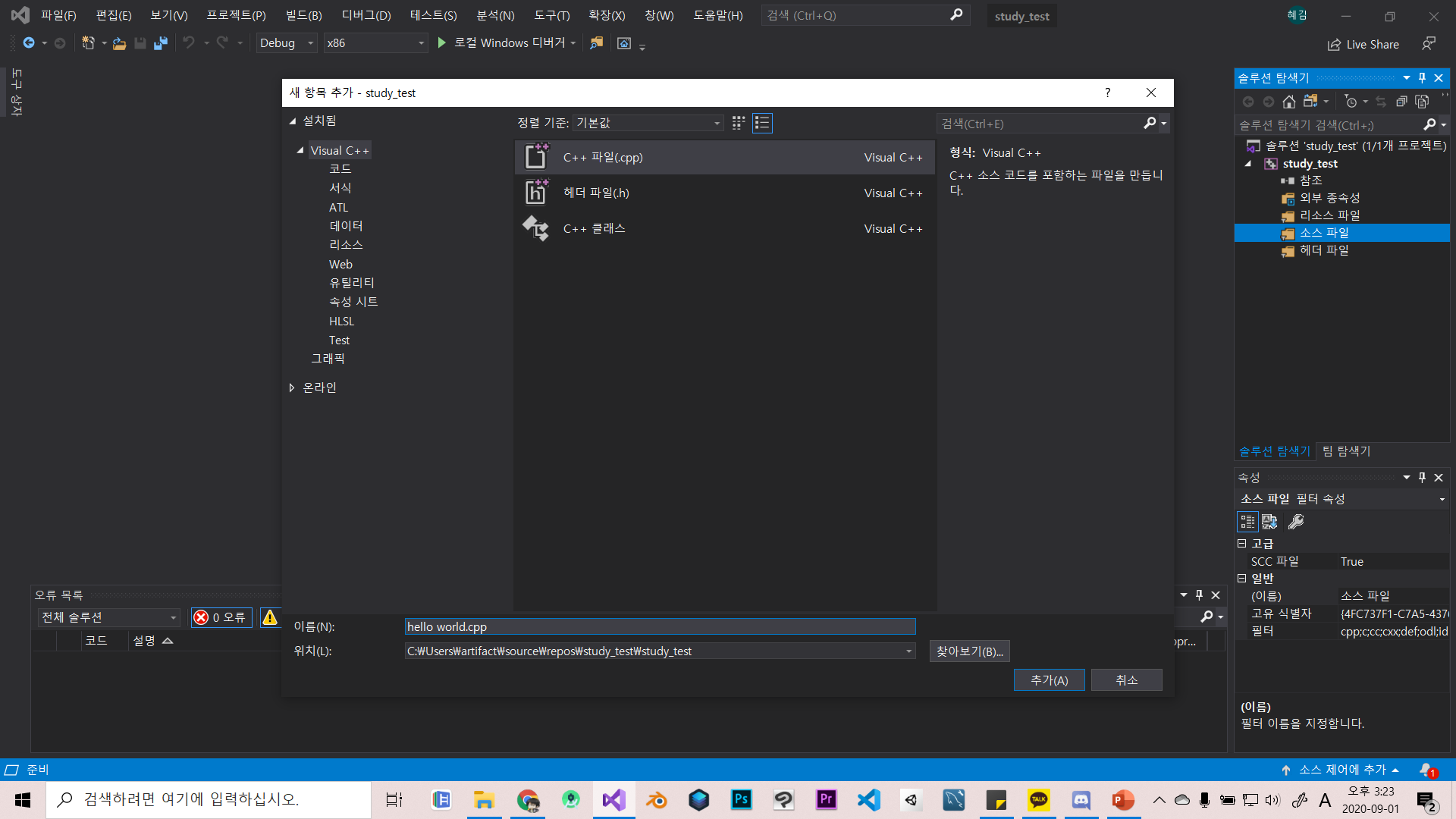헬로우 월드라는 소스 파일을 생성해주면 c++ 빌드를 위한 환경이마련됩니다. 그전에 잠시 예전에 배웠던 c가 실행됬는지 확인해볼까요?